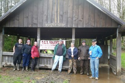 NWOET Volunteers Work on the Buxton Trail Head Whistle-Stop Shelter